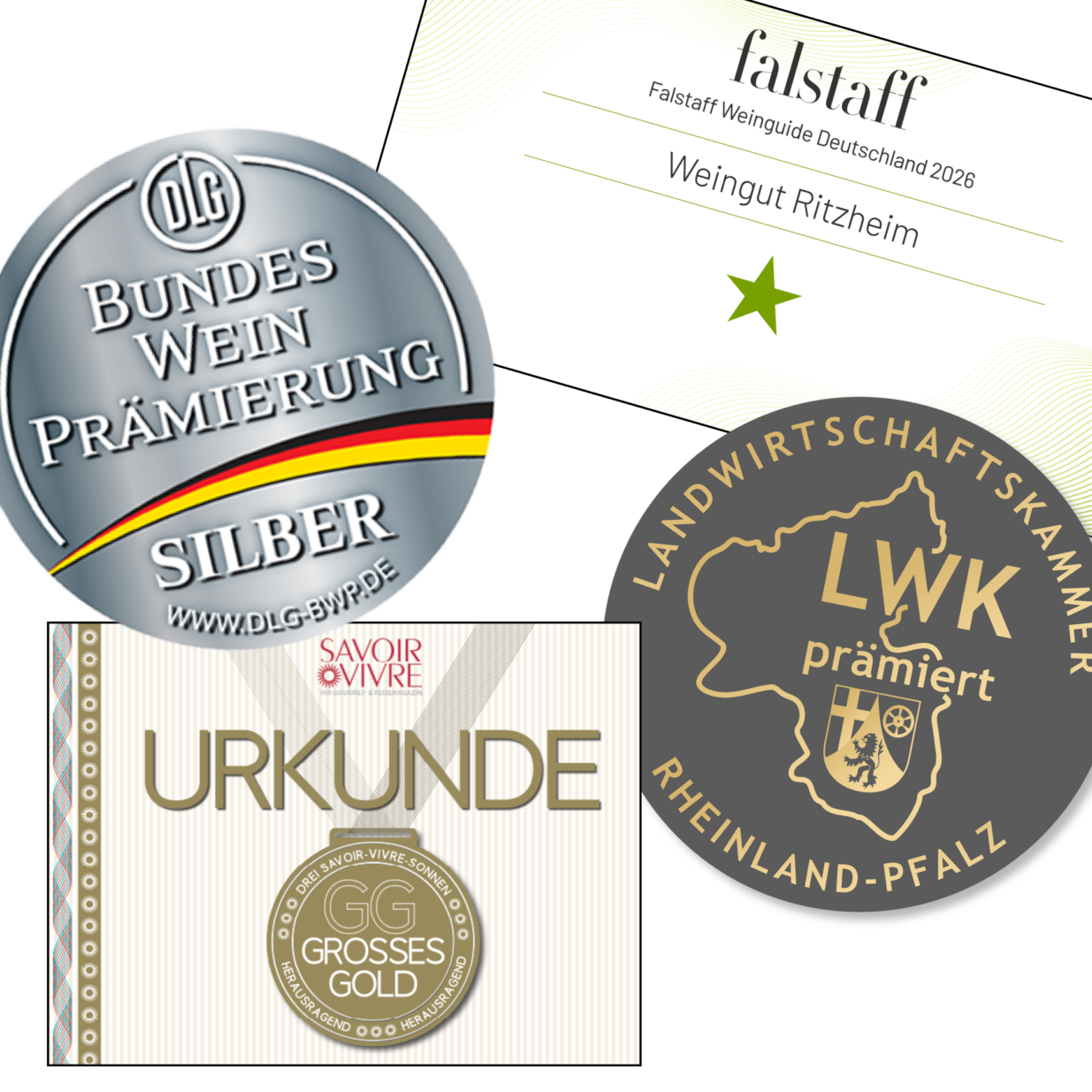 Ein echtes Highlight sind die Auszeichnungen des Genussmagazins Savoir Vivre, das mit strengen Kriterien und erfahrenen Verkostern arbeitet. Hier wurden gleich mehrere unserer Weine mit Gold und sogar Großes Gold prämiert: